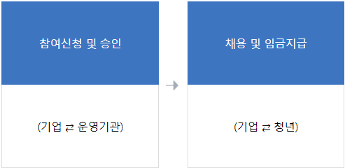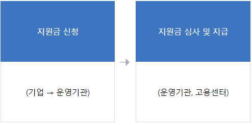 청년일자리도약장려금은 사업누리집에서 기업소재를 관할하는 운영기관을 지정하여 아래 절차에 따라 지원됩니다.